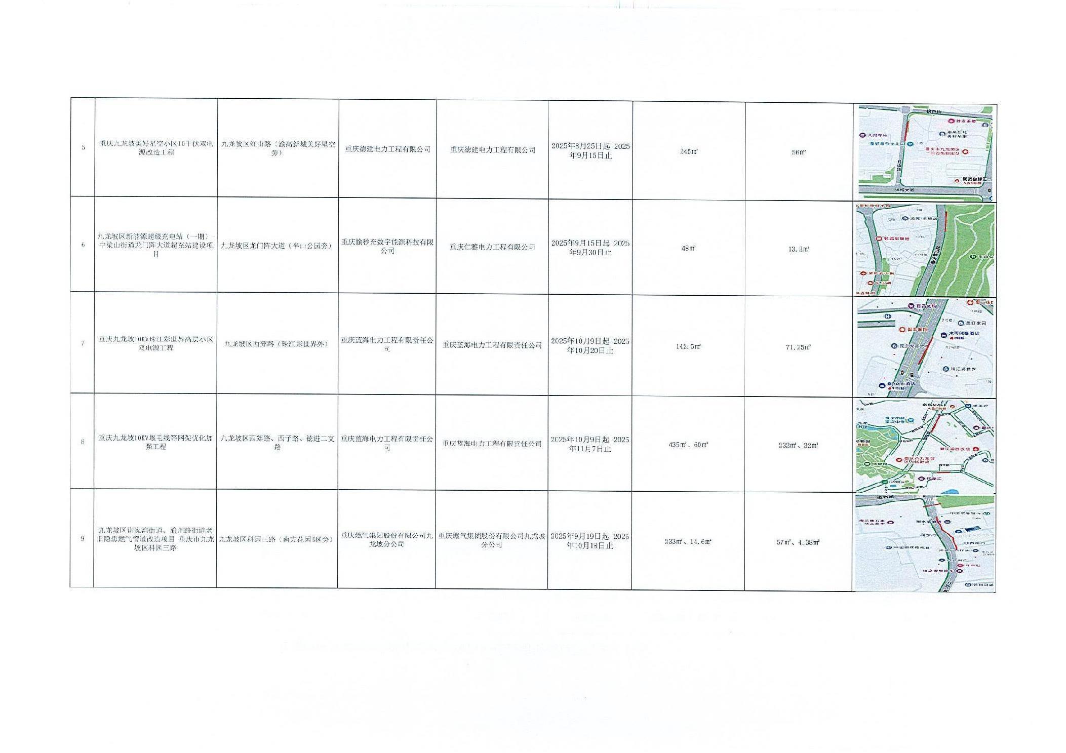 關(guān)于九龍坡區(qū)2025年9月城市道路臨時占用挖掘?qū)徟椖啃畔⒌墓?/p>