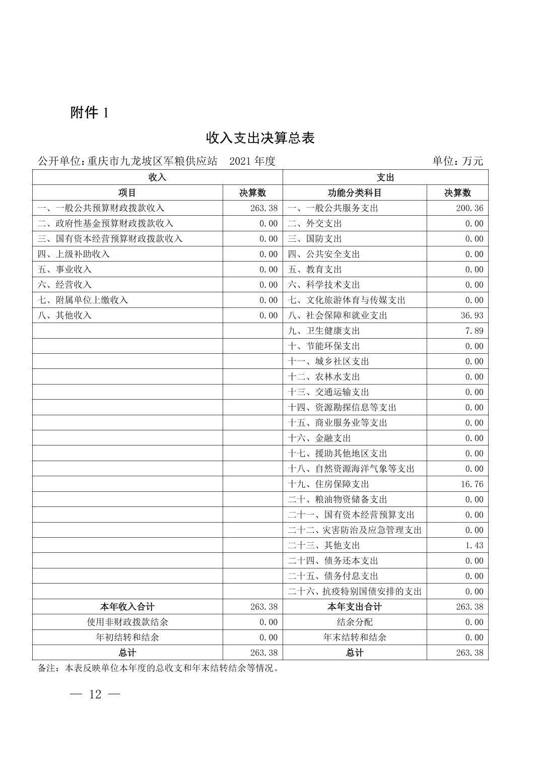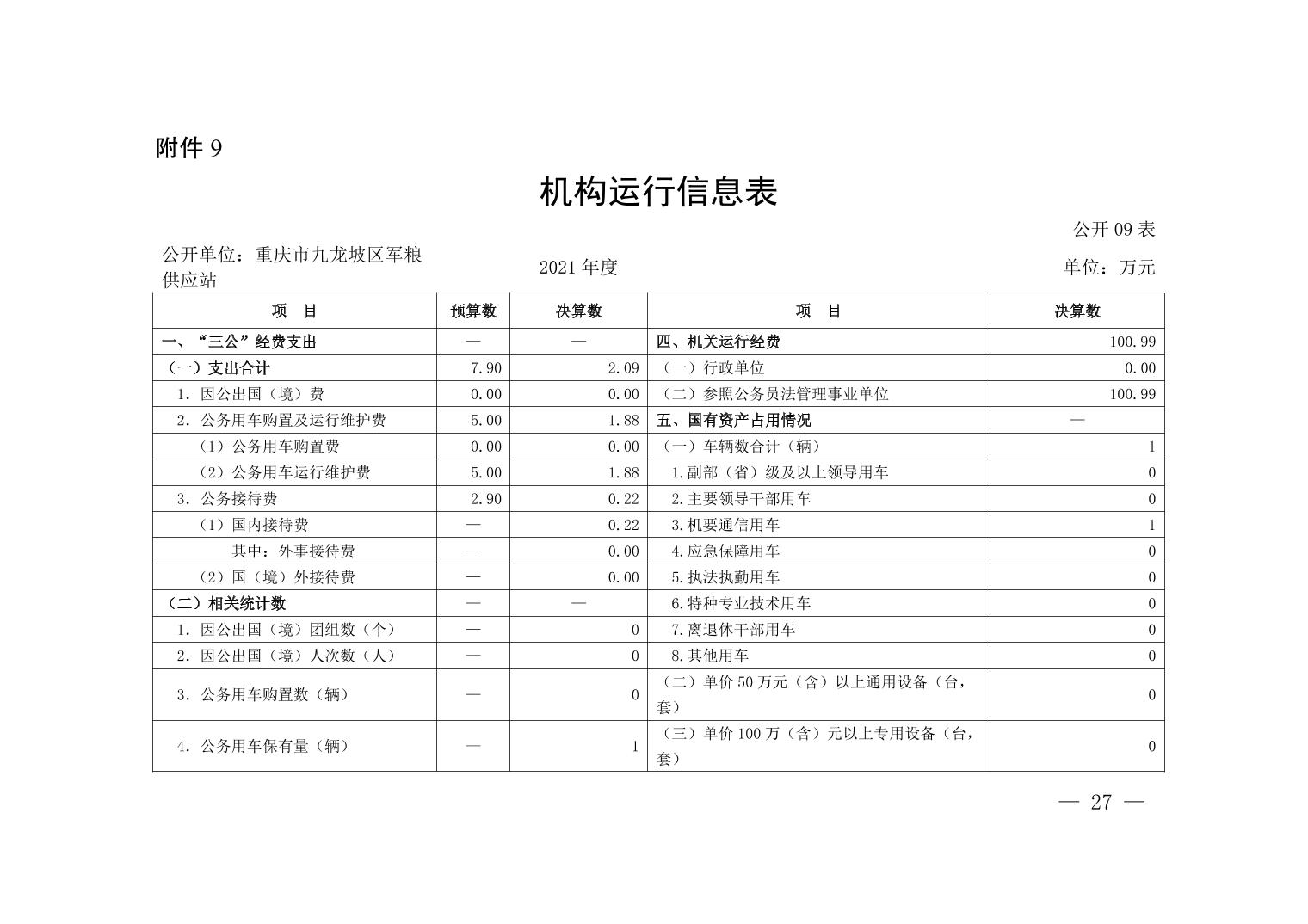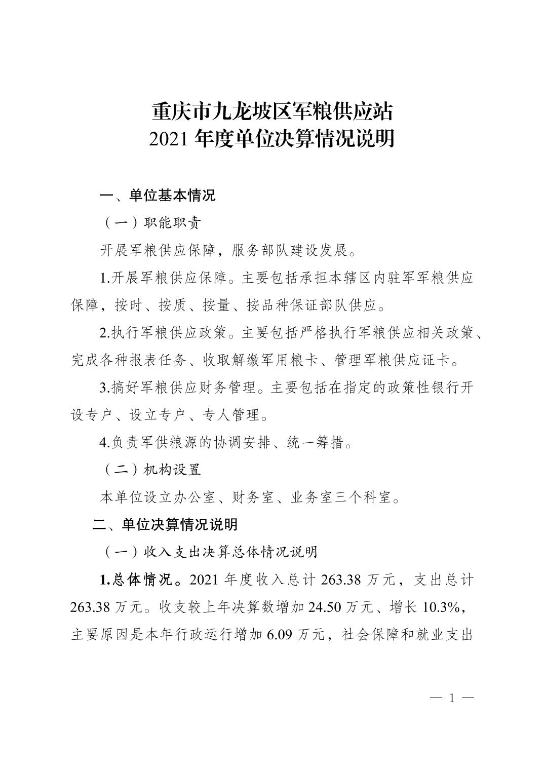 400005重慶市九龍坡區(qū)軍糧供應(yīng)站2021年度單位決算情況說明