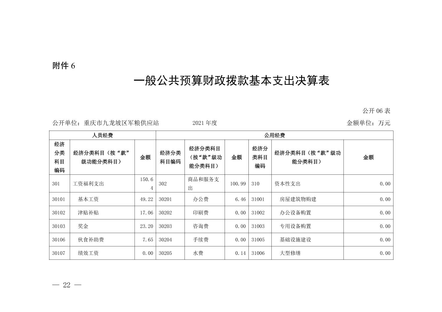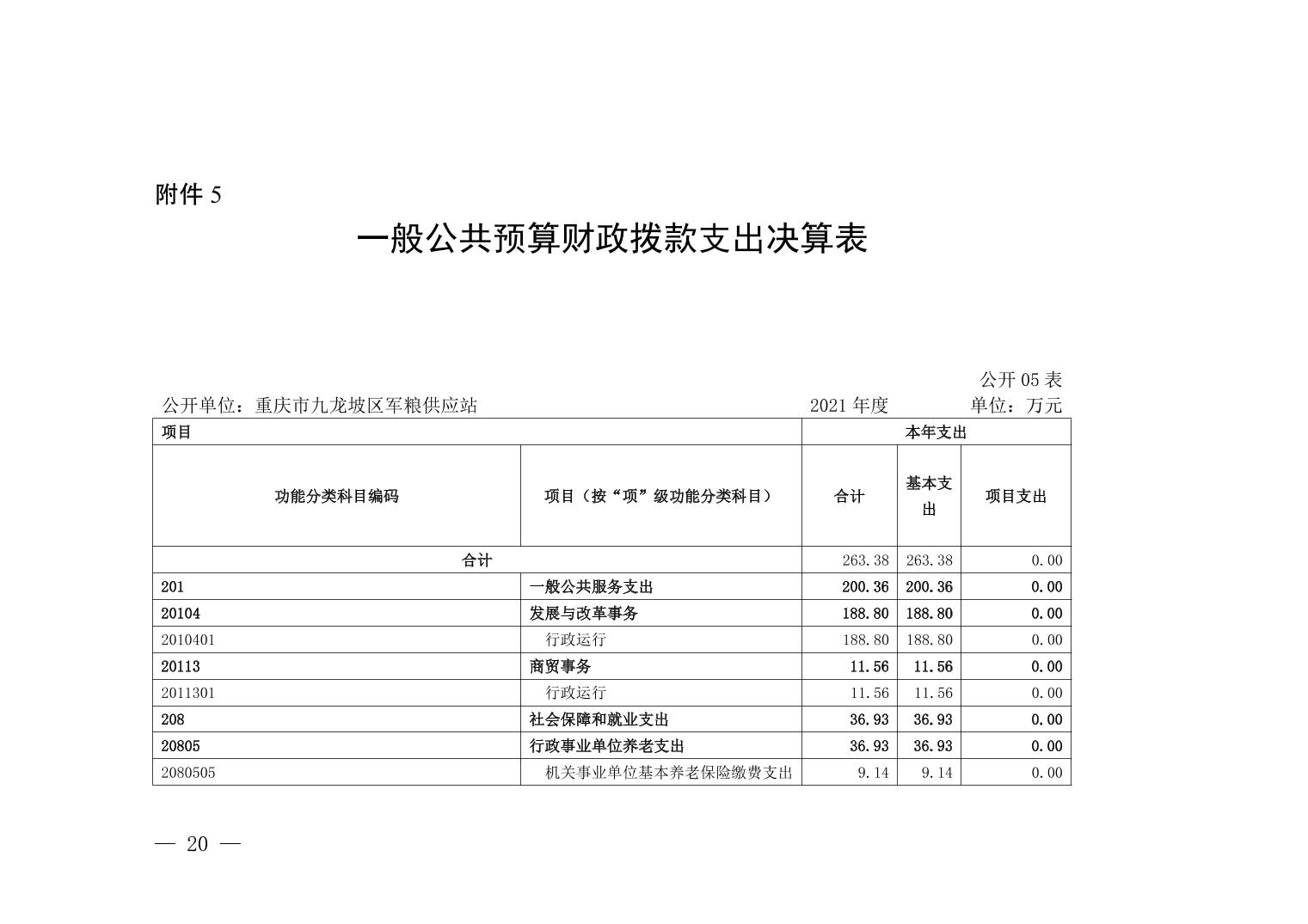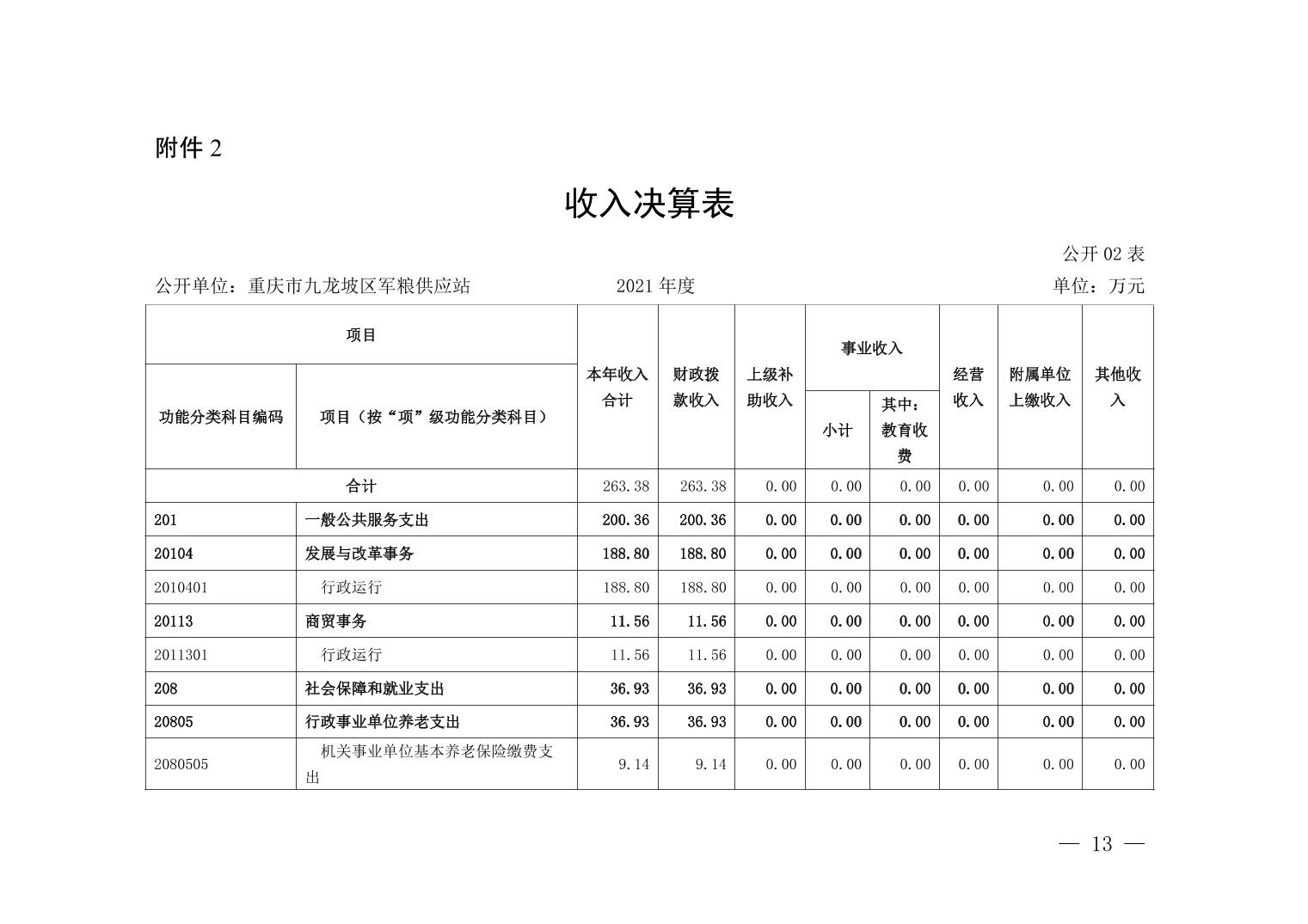 400005重慶市九龍坡區(qū)軍糧供應(yīng)站2021年度單位決算情況說明