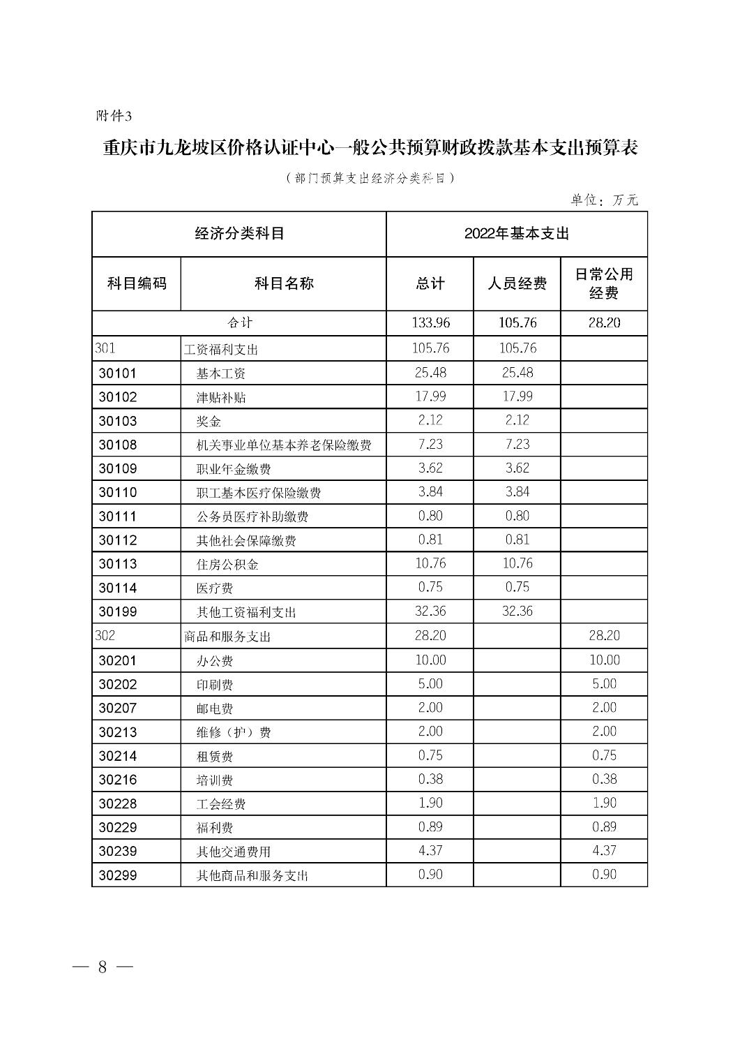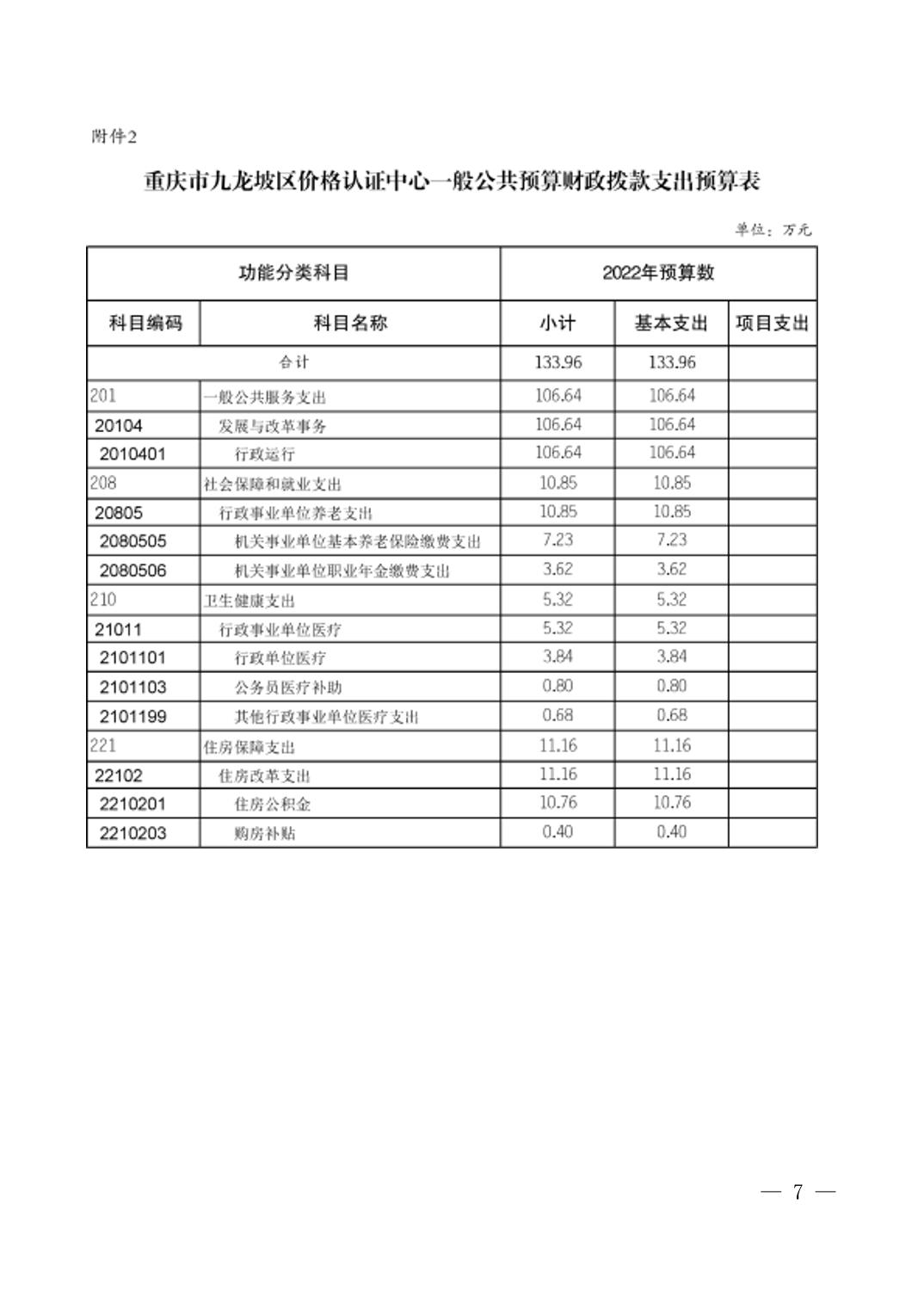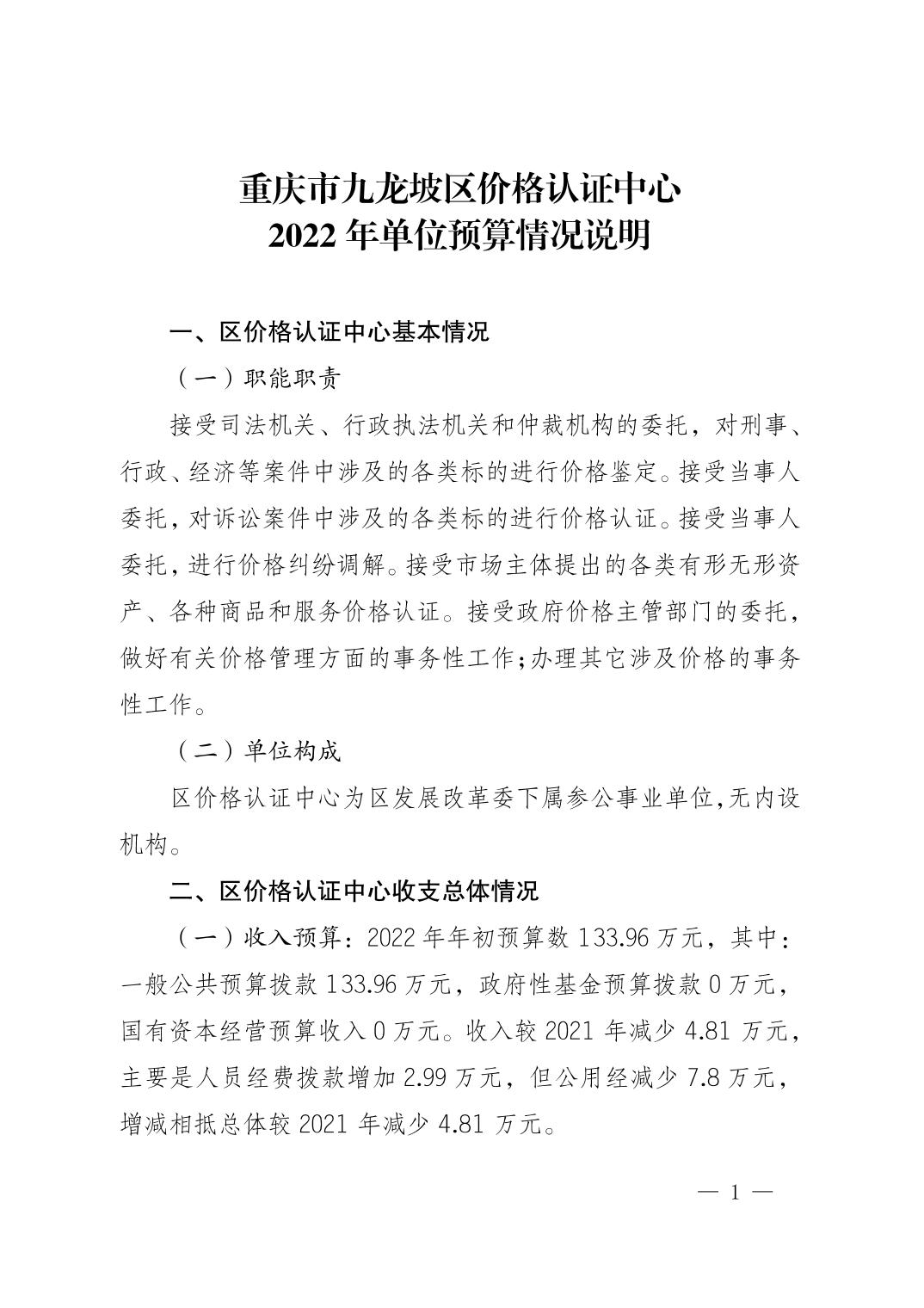 重慶市九龍坡區(qū)價(jià)格認(rèn)證中心2022年單位預(yù)算情況說(shuō)明