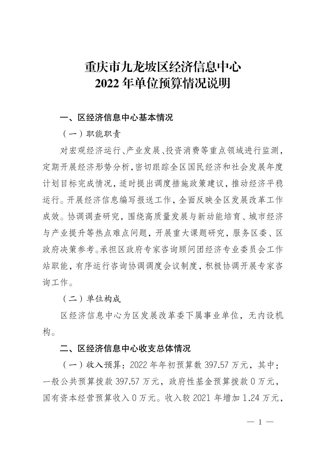 重慶市九龍坡區(qū)經(jīng)濟(jì)信息中心2022年單位預(yù)算情況說明
