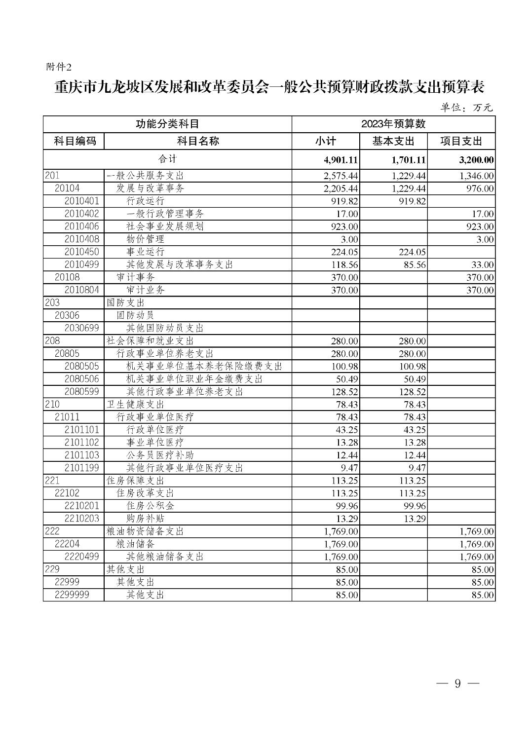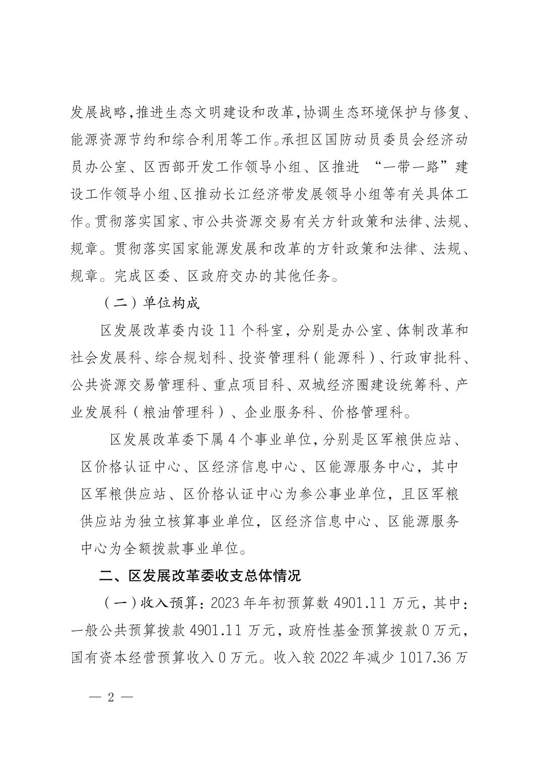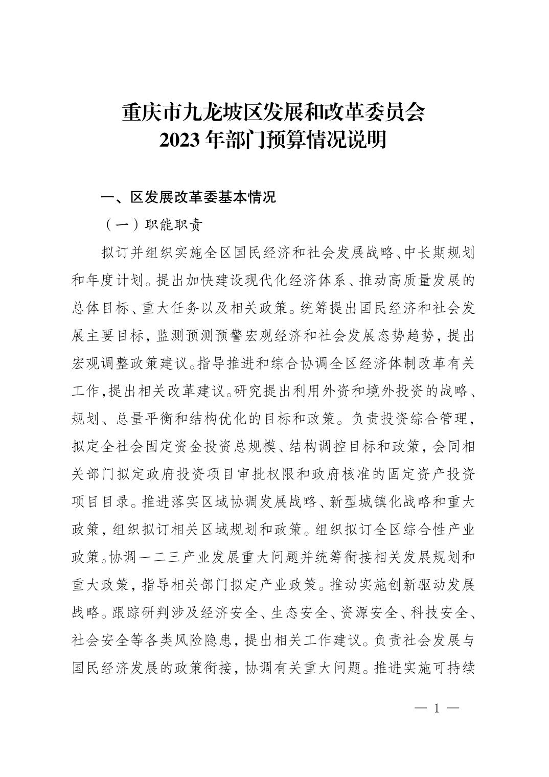 重慶市九龍坡區(qū)發(fā)展和改革委員會(huì)2023年部門預(yù)算情況說明