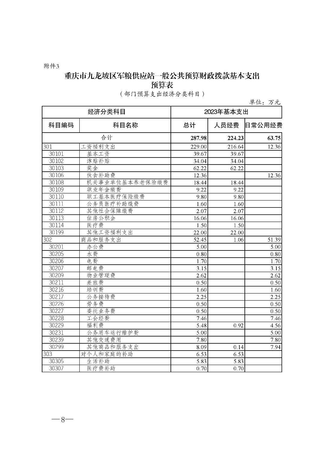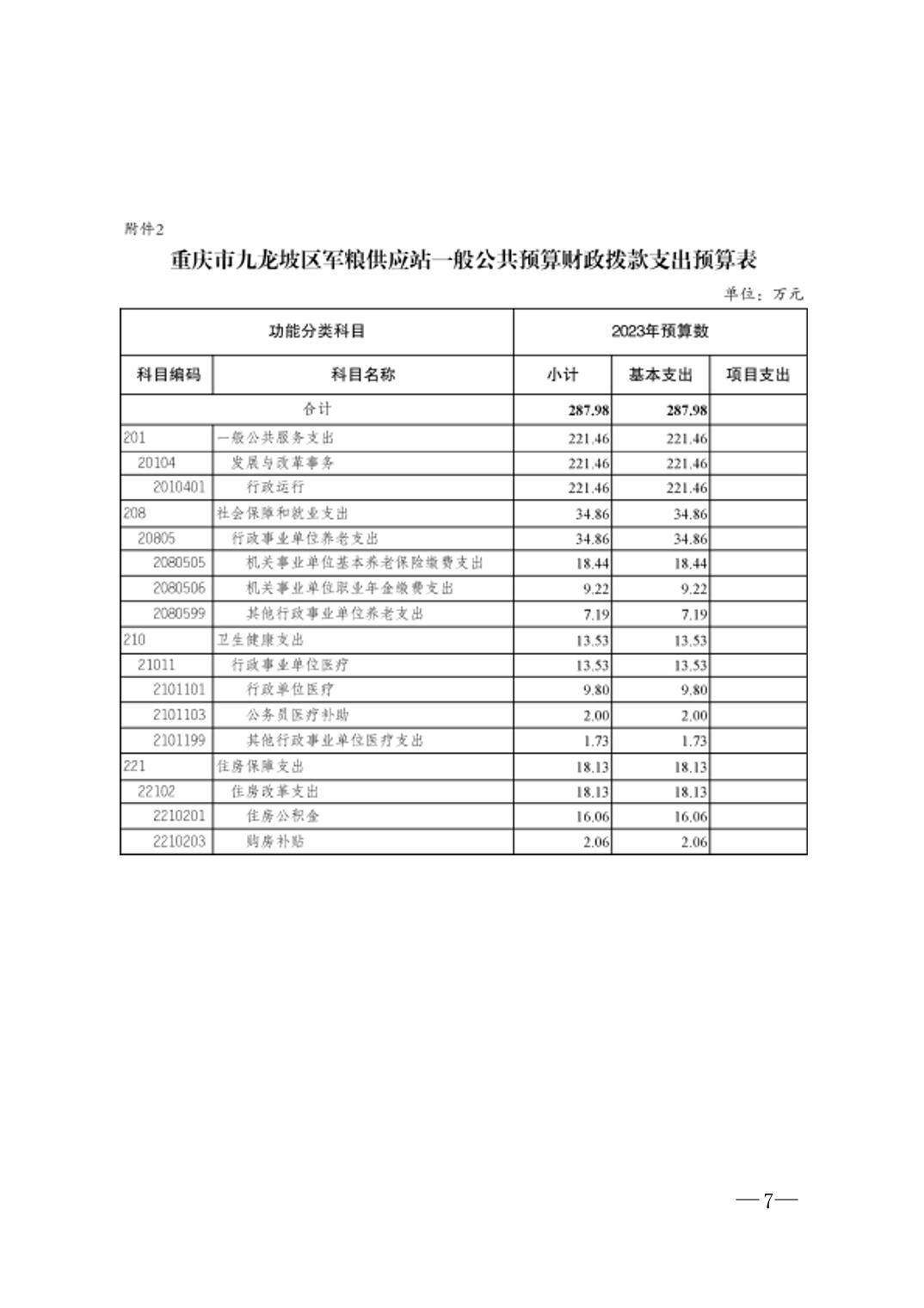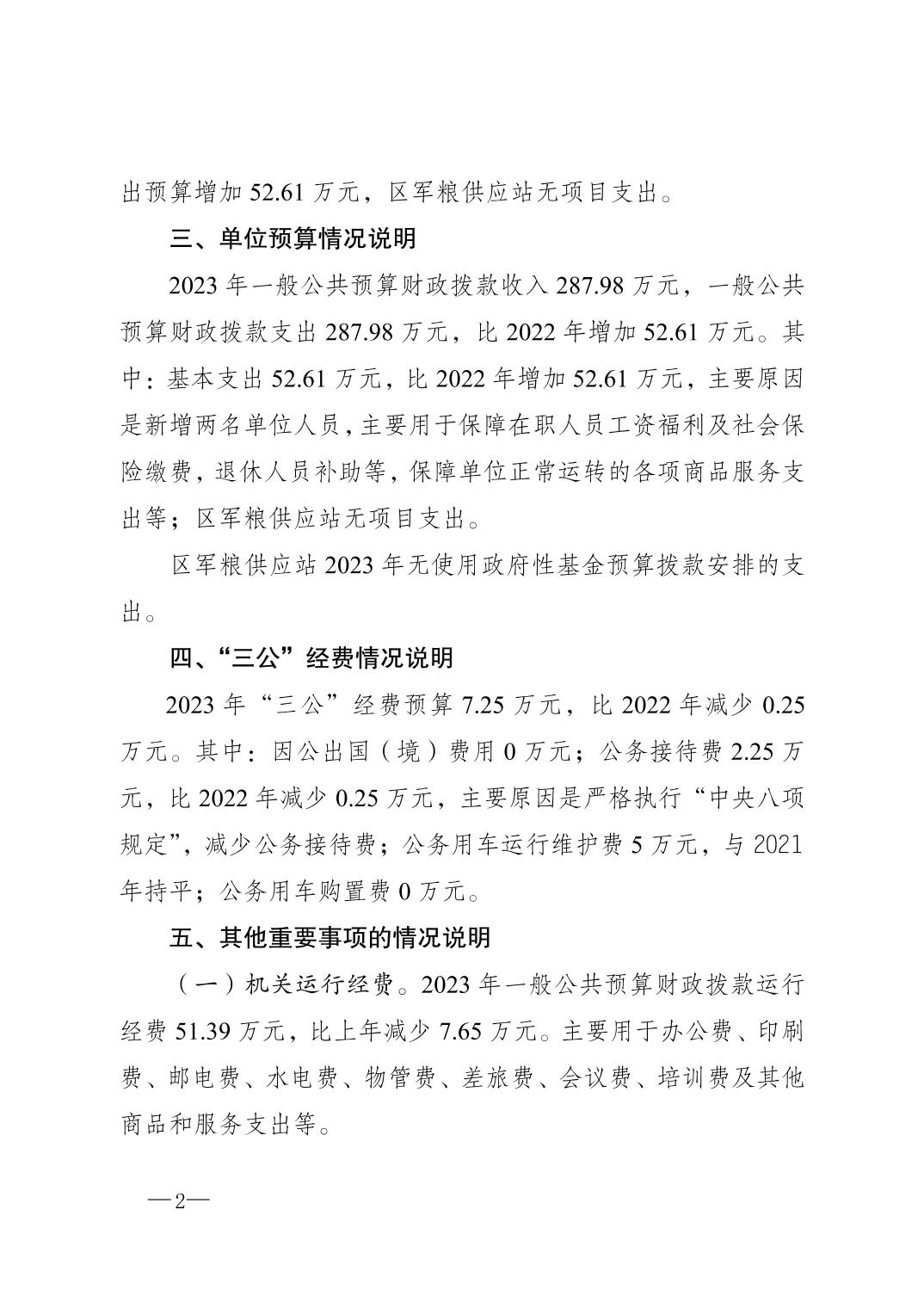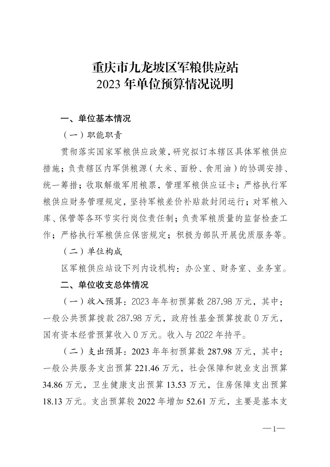 重慶市九龍坡區(qū)軍糧供應(yīng)站2023年單位預(yù)算情況說明