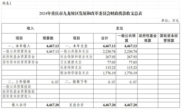 附表:1.2024年重慶市九龍坡區(qū)發(fā)展和改革委員會財政撥款收支總表