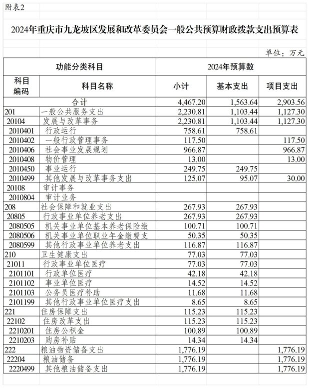 2.2024年重慶市九龍坡區(qū)發(fā)展和改革委員會一般公共預(yù)算財政撥款支出預(yù)算表