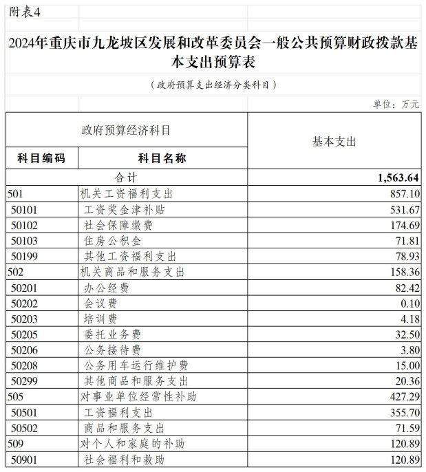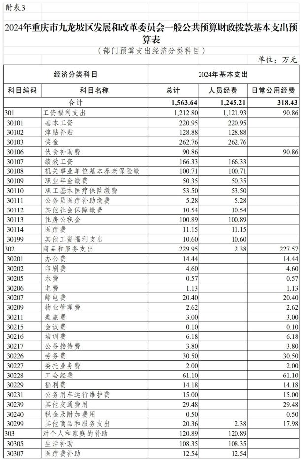 3.2024年重慶市九龍坡區(qū)發(fā)展和改革委員會一般公共預(yù)算財政撥款基本支出預(yù)算表