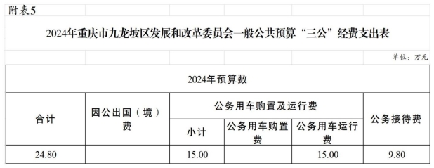 5.2024年重慶市九龍坡區(qū)發(fā)展和改革委員會一般公共預(yù)算“三公”經(jīng)費支出表