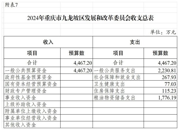 7.2024年重慶市九龍坡區(qū)發(fā)展和改革委員會收支總表
