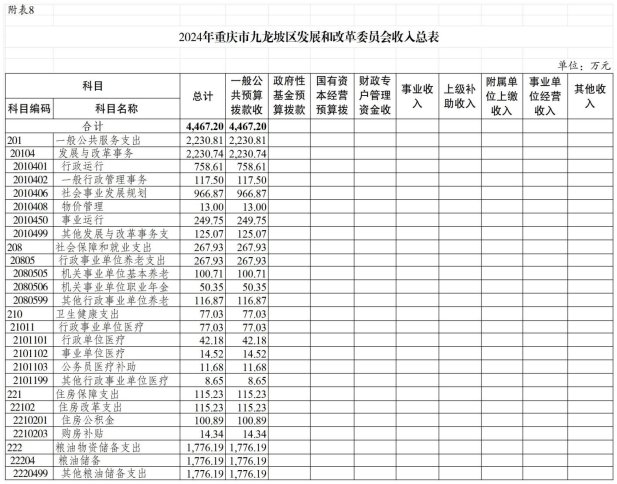 8.2024年重慶市九龍坡區(qū)發(fā)展和改革委員會收入總表