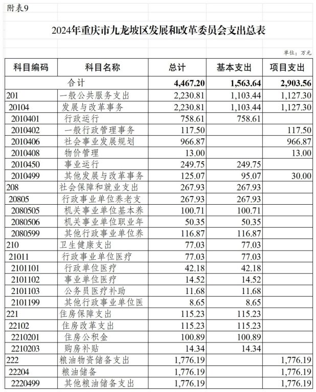 9.2024年重慶市九龍坡區(qū)發(fā)展和改革委員會支出總表(功能科目分類到項)