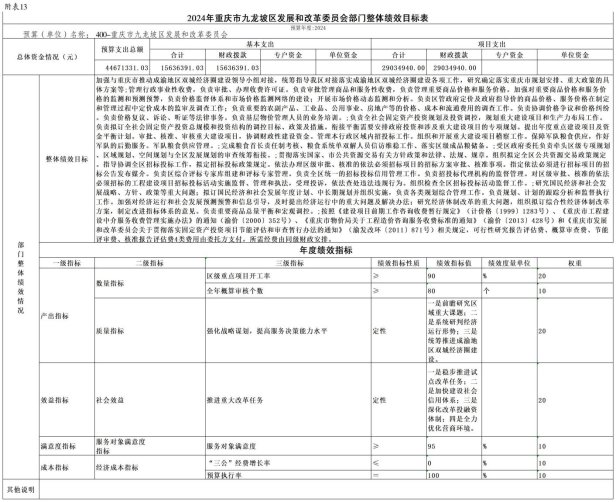 13. 2024年重慶市九龍坡區(qū)發(fā)展和改革委員會部門整體績效目標(biāo)表