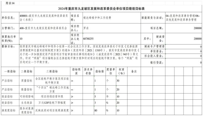14.2024年重慶市九龍坡區(qū)發(fā)展和改革委員會單位項目績效目標(biāo)表