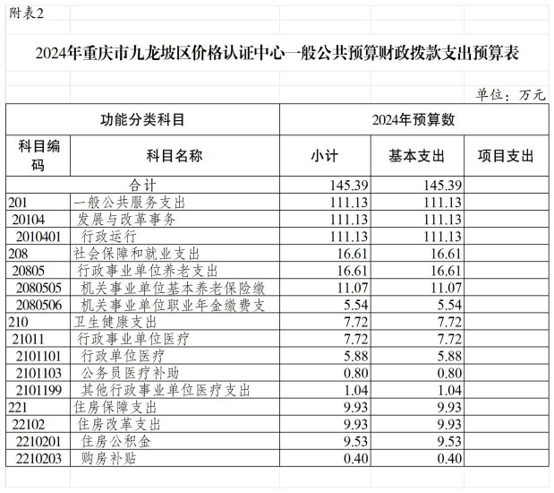 2.2024年重慶市九龍坡區(qū)價格認證中心一般公共預算財政撥款支出預算表