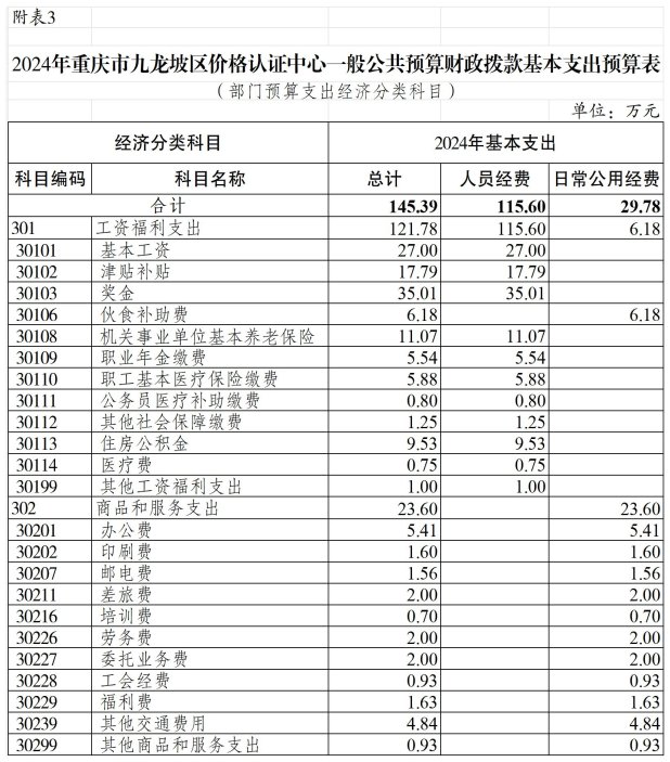 3.2024年重慶市九龍坡區(qū)價格認證中心一般公共預算財政撥款基本支出預算表