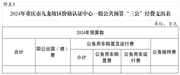 5.2024年重慶市九龍坡區(qū)價格認證中心一般公共預算“三公”經費支出表