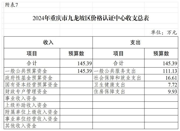 7.2024年重慶市九龍坡區(qū)價格認證中心收支總表