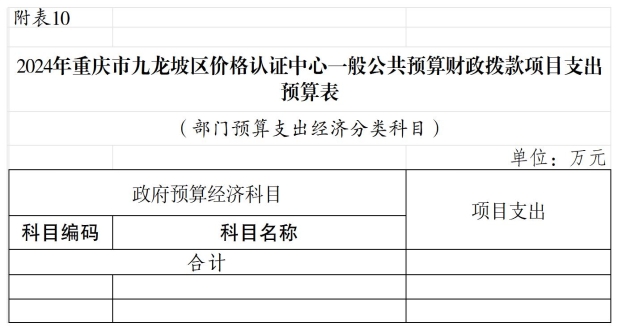 10.2024年重慶市九龍坡區(qū)價格認證中心一般公共預算財政撥款項目支出預算表(部門預算支出經濟分類科目)