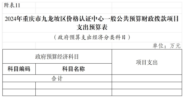 11.2024年重慶市九龍坡區(qū)價格認證中心一般公共預算財政撥款項目支出預算表(政府預算支出經濟分類科目)