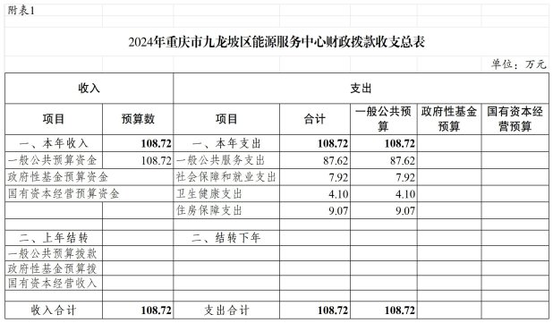 附表:1.2024年重慶市九龍坡區(qū)能源服務(wù)中心財(cái)政撥款收支總表