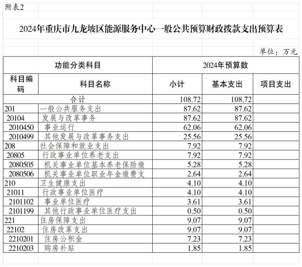 2.2024年重慶市九龍坡區(qū)能源服務(wù)中心一般公共預(yù)算財(cái)政撥款支出預(yù)算表