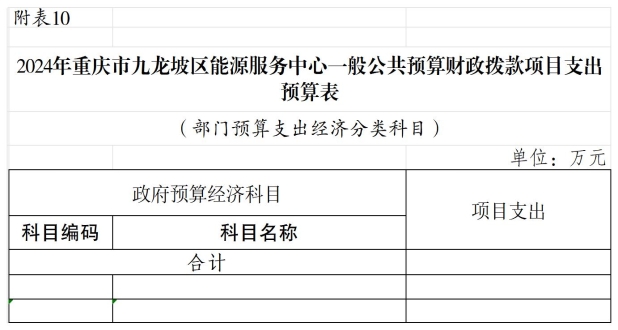 10.2024年重慶市九龍坡區(qū)能源服務(wù)中心一般公共預(yù)算財(cái)政撥款項(xiàng)目支出預(yù)算表(部門預(yù)算支出經(jīng)濟(jì)分類科目)
