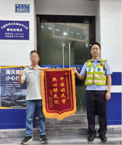 近日,外地游客馬先生將一面錦旗專程送至九龍坡區(qū)公安分局交管支隊楊家坪大隊,感謝民警暖心救助,協(xié)助患病家人就醫(yī)。