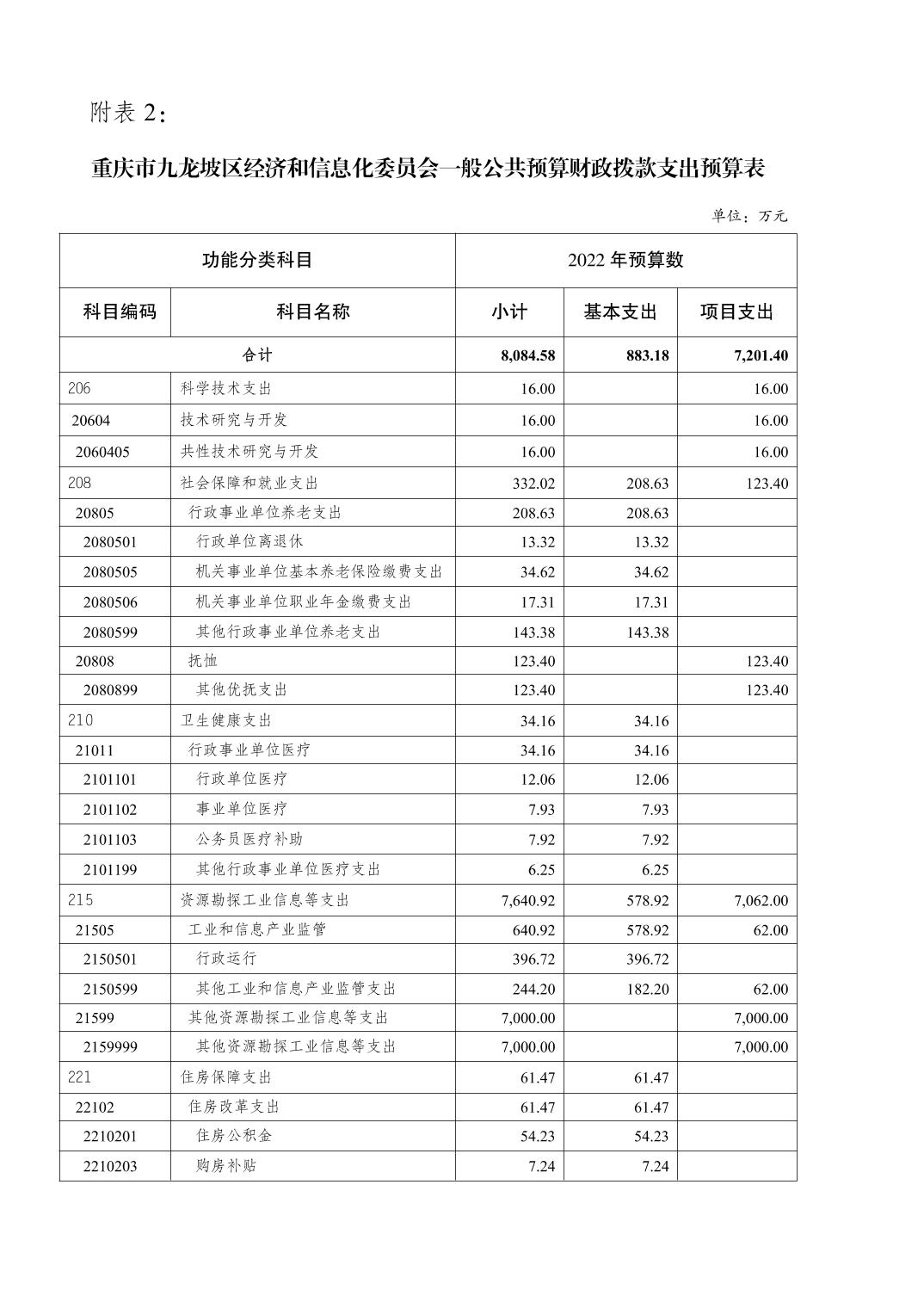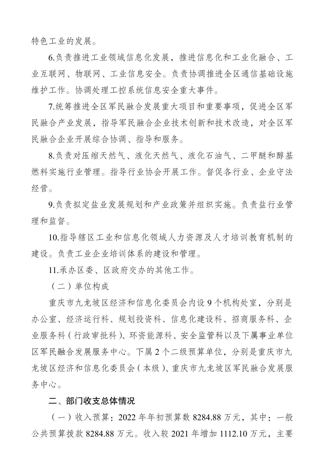 重慶市九龍坡區(qū)經(jīng)濟和信息化委員會2022年部門預(yù)算情況說明