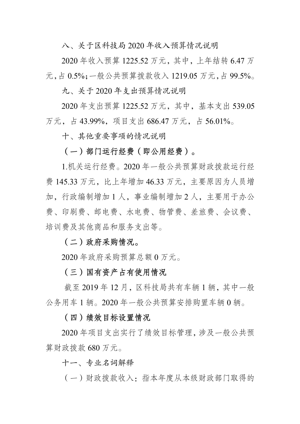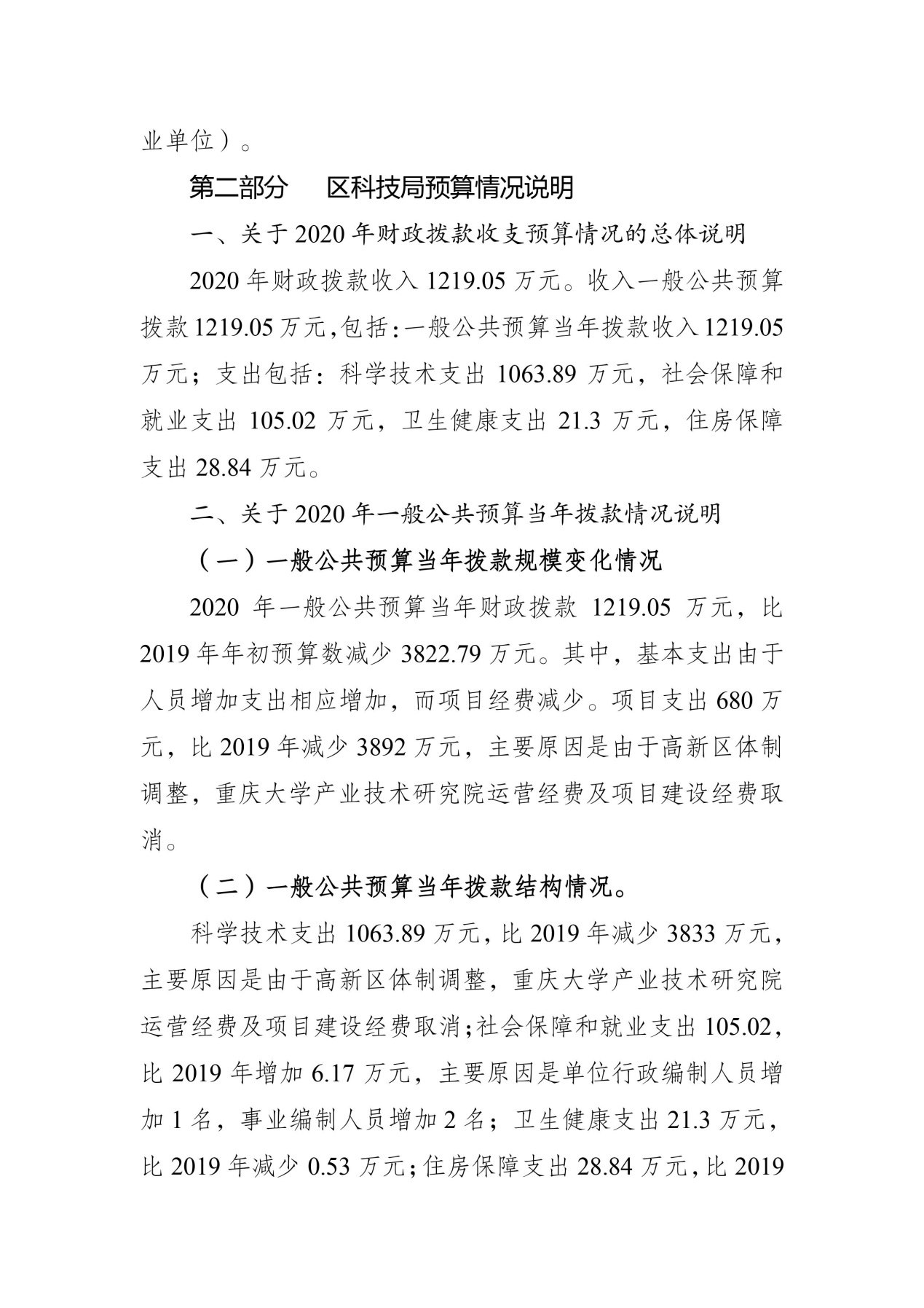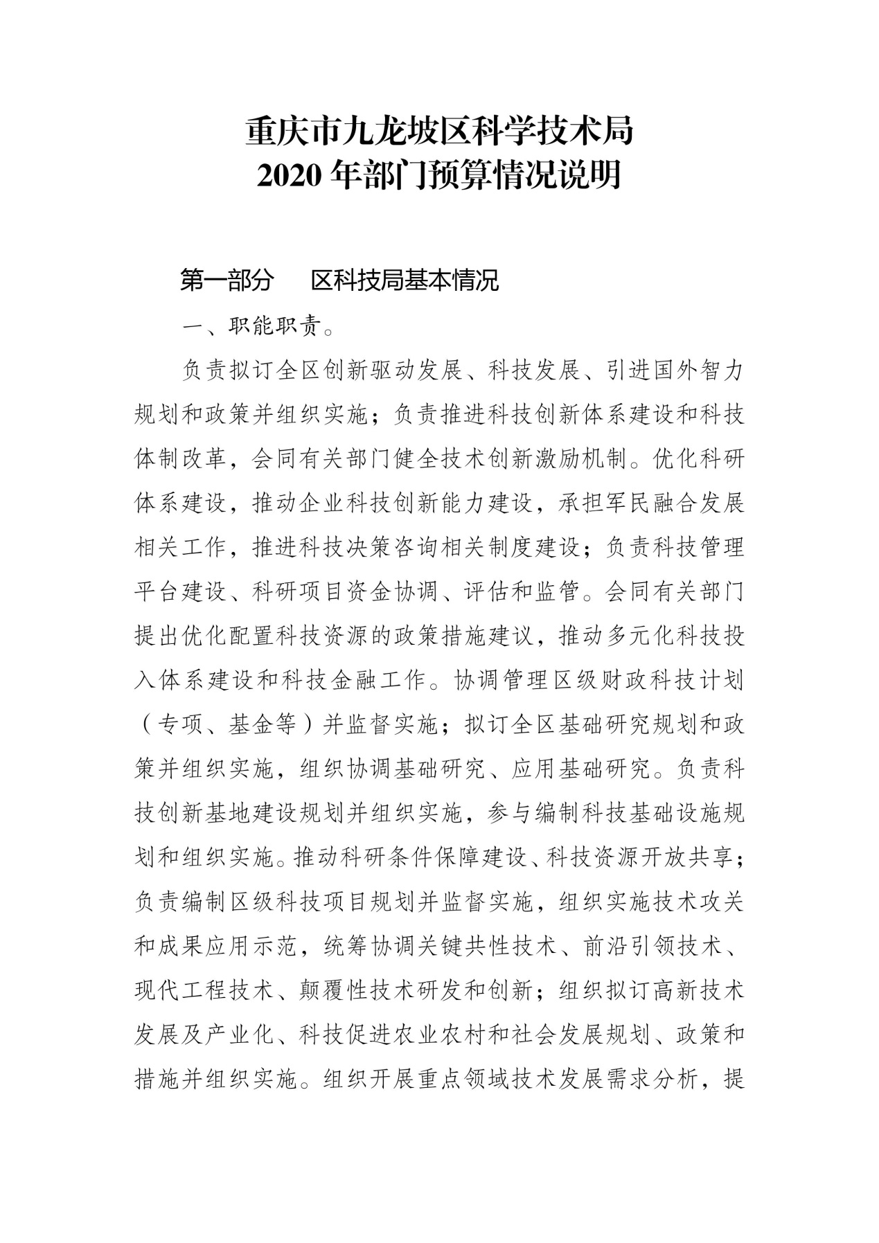 重慶市九龍坡區(qū)科學技術局2020年部門預算情況說明