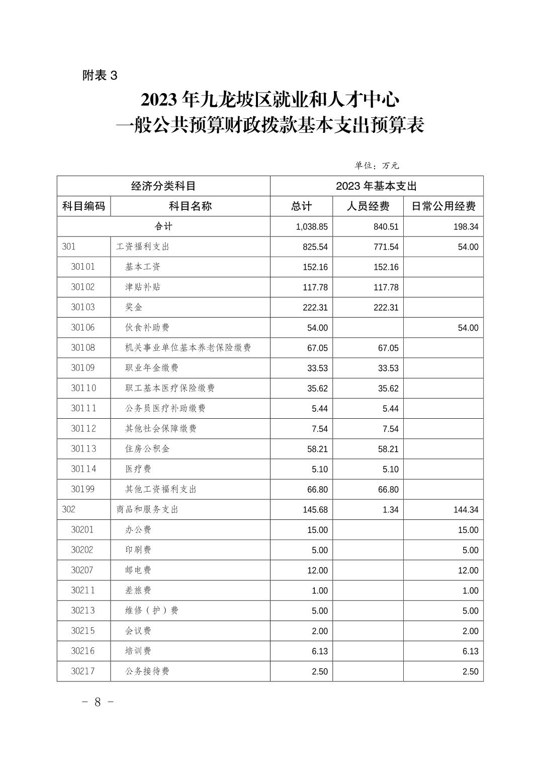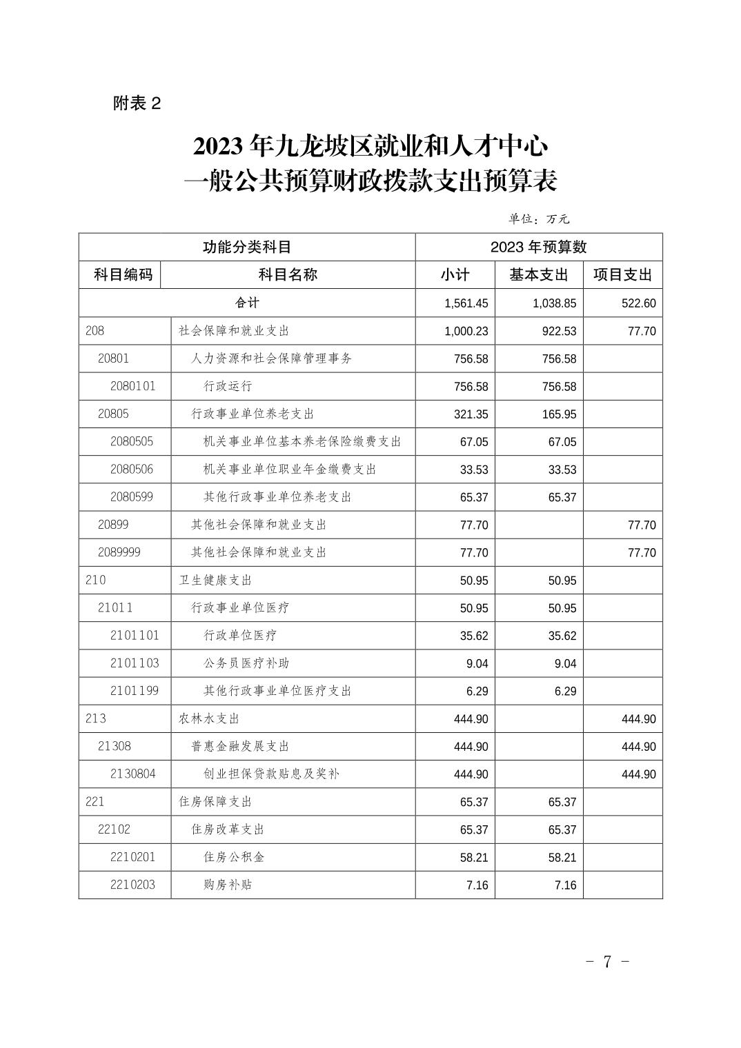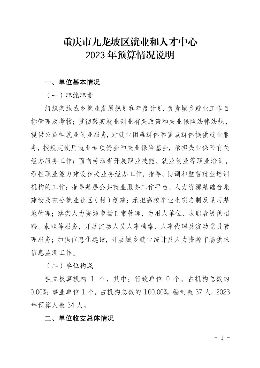 重慶市九龍坡區(qū)就業(yè)和人才中心2023年預算公開情況說明