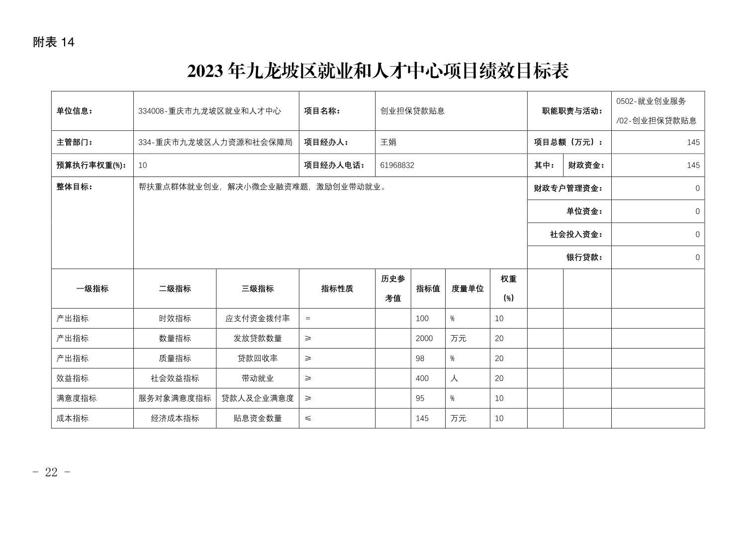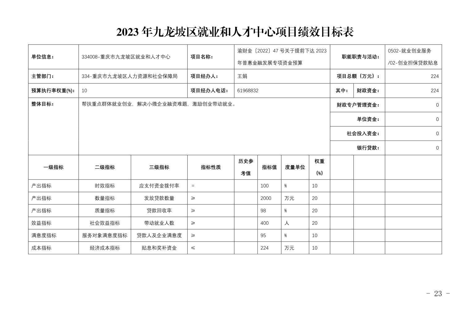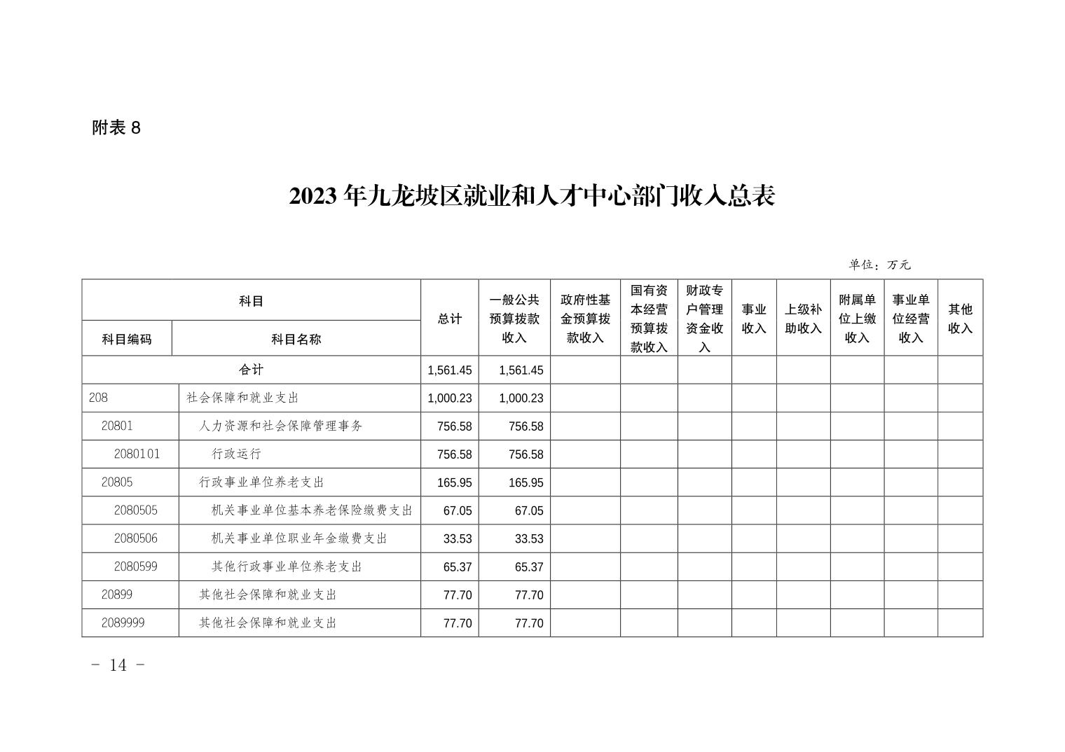 重慶市九龍坡區(qū)就業(yè)和人才中心2023年預算公開情況說明