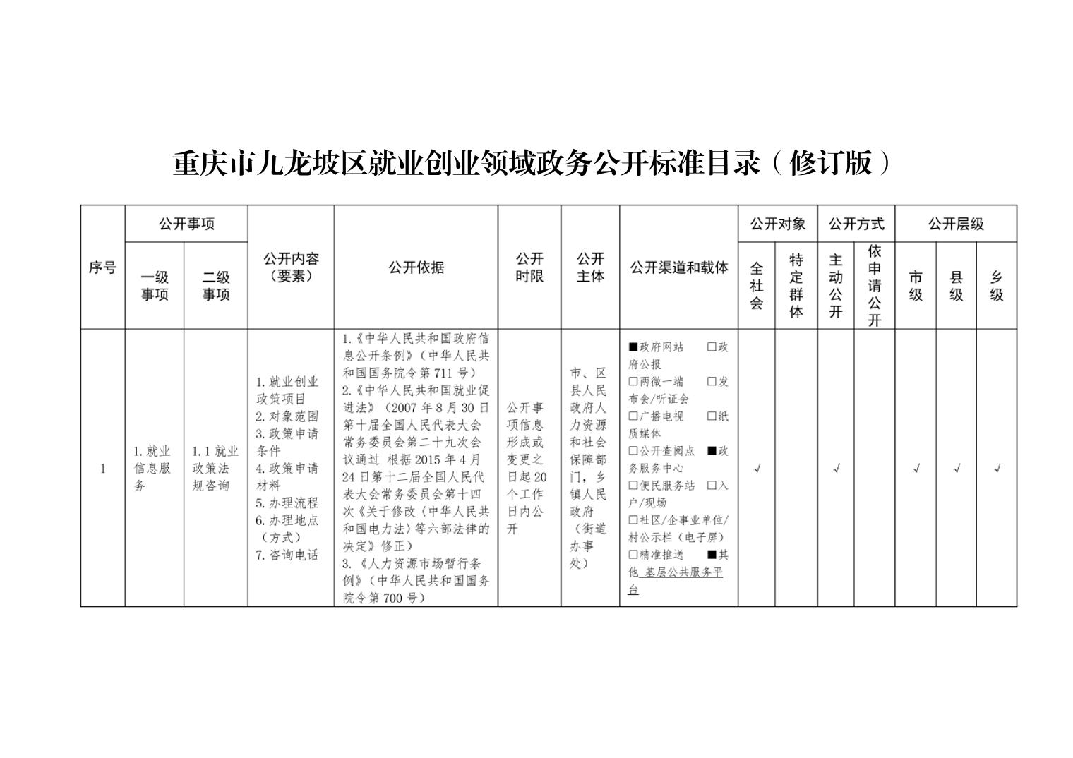 重慶市九龍坡區(qū)就業(yè)創(chuàng)業(yè)領(lǐng)域政務(wù)公開標(biāo)準(zhǔn)目錄(2025修訂版)