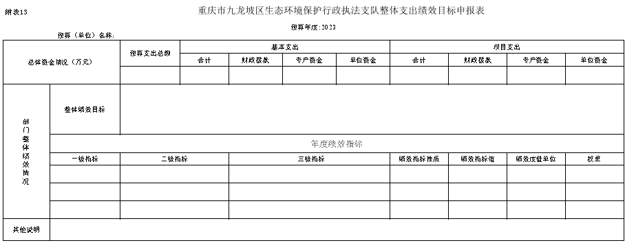 13. 2023年重慶市九龍坡區(qū)生態(tài)環(huán)境保護綜合行政執(zhí)法支隊整體績效目標(biāo)表
