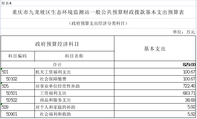 4.2023年重慶市九龍坡區(qū)生態(tài)環(huán)境監(jiān)測(cè)站一般公共預(yù)算財(cái)政撥款基本支出預(yù)算表(政府預(yù)算支出經(jīng)濟(jì)分類科目)