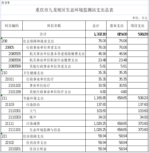 9.2023年重慶市九龍坡區(qū)生態(tài)環(huán)境監(jiān)測(cè)站支出總表(功能科目分類到項(xiàng))