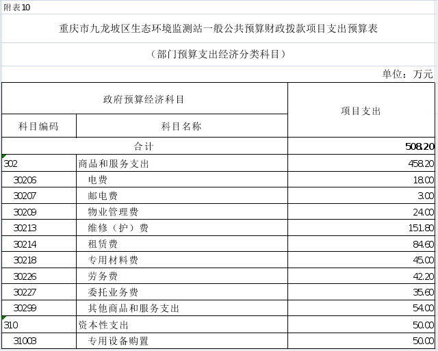 11.2023年重慶市九龍坡區(qū)生態(tài)環(huán)境監(jiān)測(cè)站一般公共預(yù)算財(cái)政撥款項(xiàng)目支出預(yù)算表(政府經(jīng)濟(jì)分類科目)