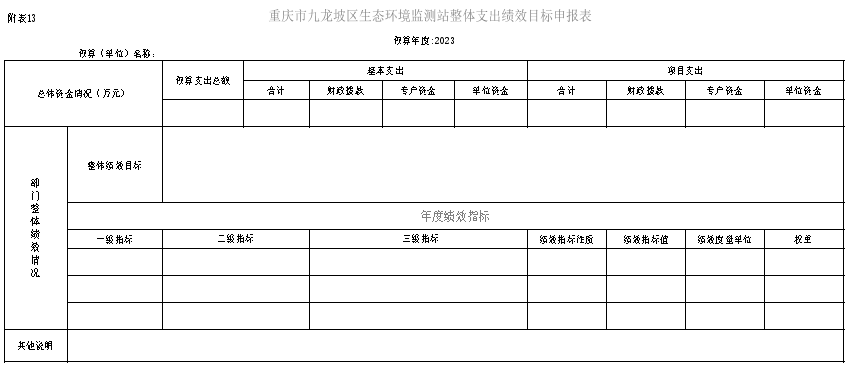 13.2023年重慶市九龍坡區(qū)生態(tài)環(huán)境監(jiān)測(cè)站整體績(jī)效目標(biāo)表