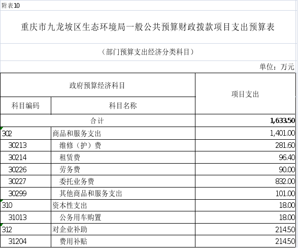10.2025年重慶市九龍坡區(qū)生態(tài)環(huán)境局(本級(jí))一般公共預(yù)算財(cái)政撥款項(xiàng)目支出預(yù)算表(部門經(jīng)