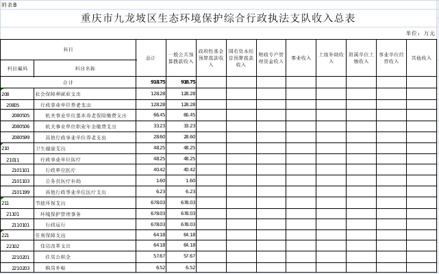 8.2025年重慶市九龍坡區(qū)生態(tài)環(huán)境保護(hù)綜合行政執(zhí)法支隊(duì)收入總表