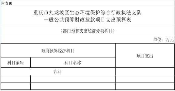 10.2025年重慶市九龍坡區(qū)生態(tài)環(huán)境保護(hù)綜合行政執(zhí)法支隊(duì)一般公共預(yù)算財(cái)政撥款項(xiàng)目支出預(yù)算表(部門經(jīng)濟(jì)分類科目)