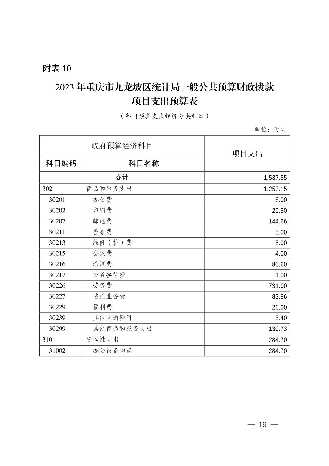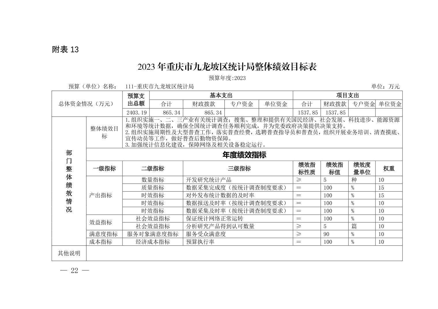 重慶市九龍坡區(qū)統(tǒng)計局2023年預算公開情況說明