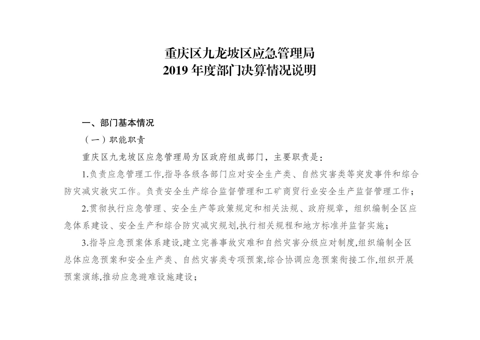 重慶市九龍坡區(qū)應(yīng)急管理局2019年部門決算情況說明