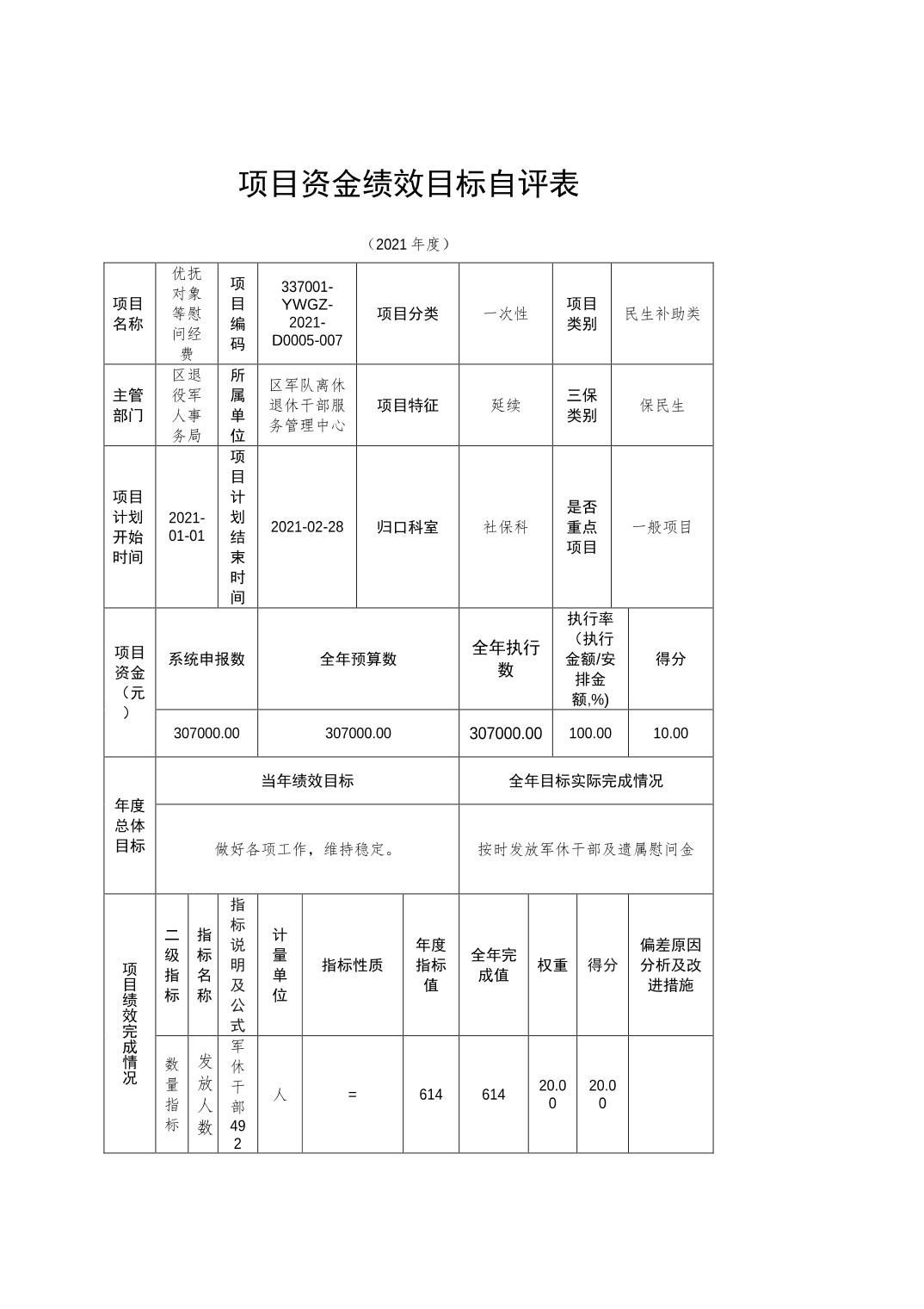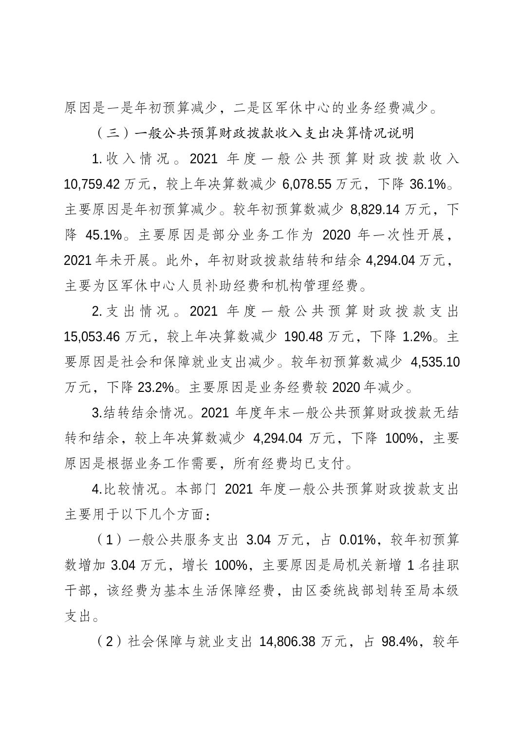 337重慶市九龍坡區(qū)退役軍人事務(wù)局2021年度部門決算情況說明