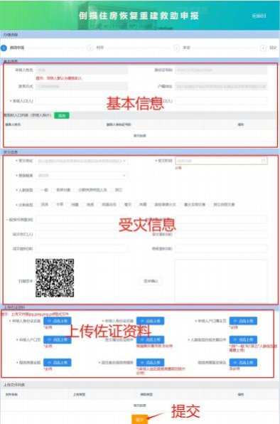 第二步:在倒損住房恢復(fù)重建救助申報(bào)頁(yè)面上填寫基本信息受