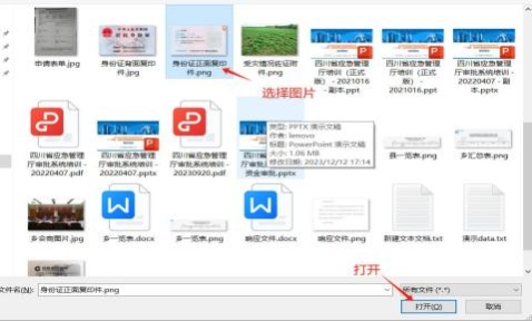 點擊申報人身份證正面后的【點擊上傳】按鈕,在彈出的窗口選擇身份證正面圖片,然后點擊【打開】按鈕,完成圖片上傳。如圖10-8 所示: