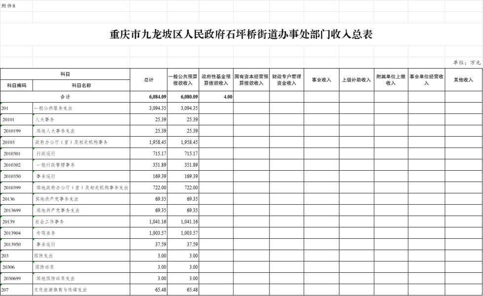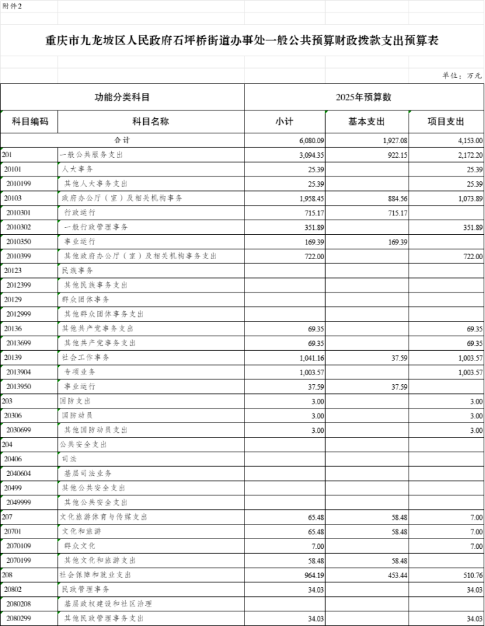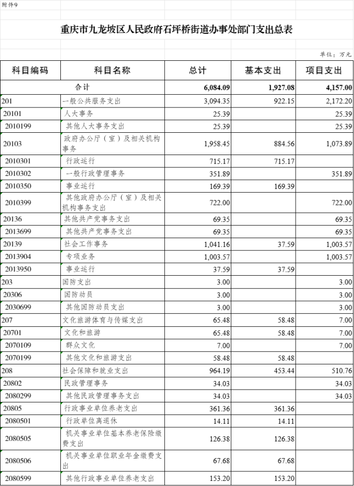 9.2025年九龍坡區(qū)人民政府石坪橋街道辦事處部門支出總表(功能科目分類到項(xiàng))