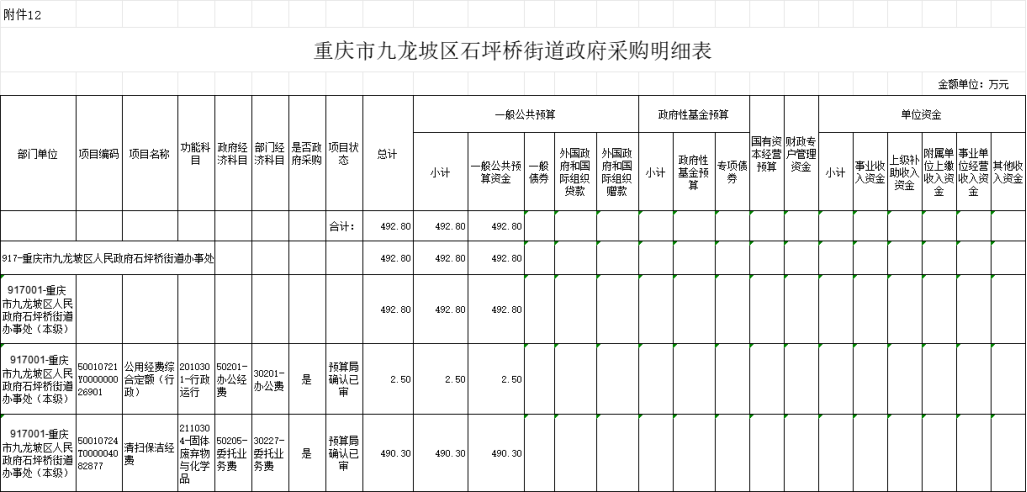12. 2025年九龍坡區(qū)人民政府石坪橋街道辦事處政府采購明細(xì)表