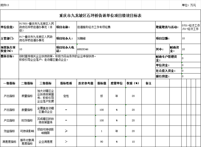 13. 2025年九龍坡區(qū)人民政府石坪橋街道辦事處單位項(xiàng)目績效目標(biāo)表
