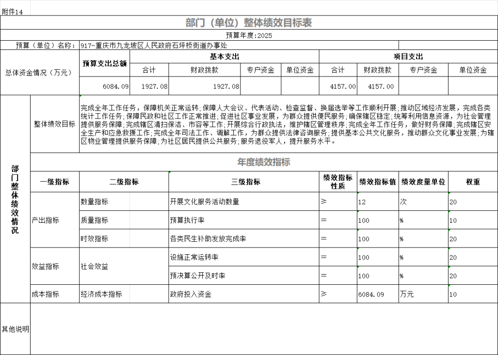 14.2025年九龍坡區(qū)人民政府石坪橋街道辦事處部門整體績效表