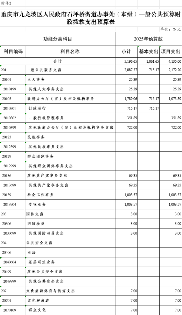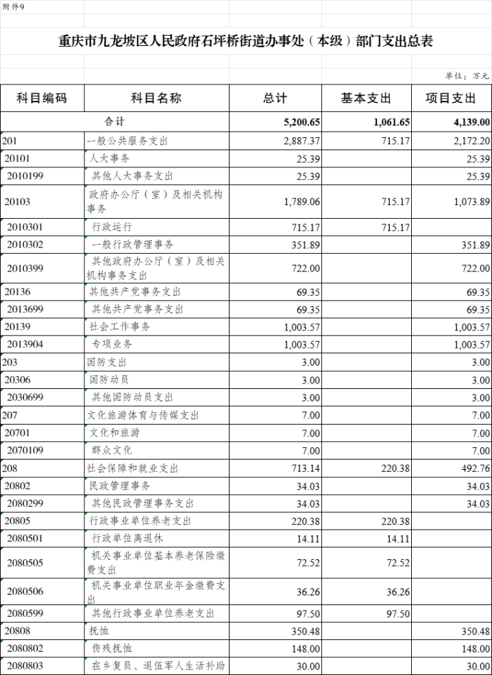 9.2025年九龍坡區(qū)人民政府石坪橋街道辦事處(本級)單位支出總表(功能科目分類到項)