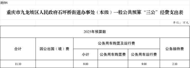 5.2025年九龍坡區(qū)人民政府石坪橋街道辦事處(本級)一般公共預算三公經費支出表